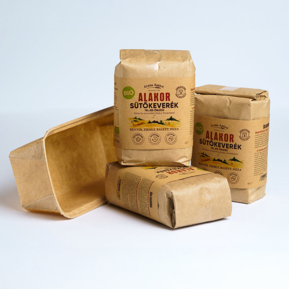 3 csomag Alakor teljes őrlésű sütőkeverék (500 g) – Az ősi Alakorból készült, teljes őrlésű sütőkeverék ideális alapanyag kenyerekhez és sós péksüteményekhez. Különleges ízvilága és sárgás színe a magas béta-karotin tartalomnak köszönhetően minden sütést egyedivé tesz. Készíthet belőle ízletes kenyeret, kiflit, vagy akár ropogós pizzát. A rostokban gazdag keverék hozzájárul az egészséges emésztéshez, miközben ízletes és tápláló végeredményt nyújt.